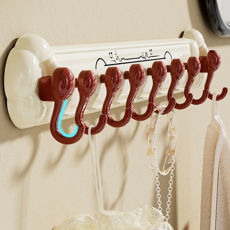 Gancho de pared fuerte para baño, con ventosa y sin perforación, diseño de flores en fila